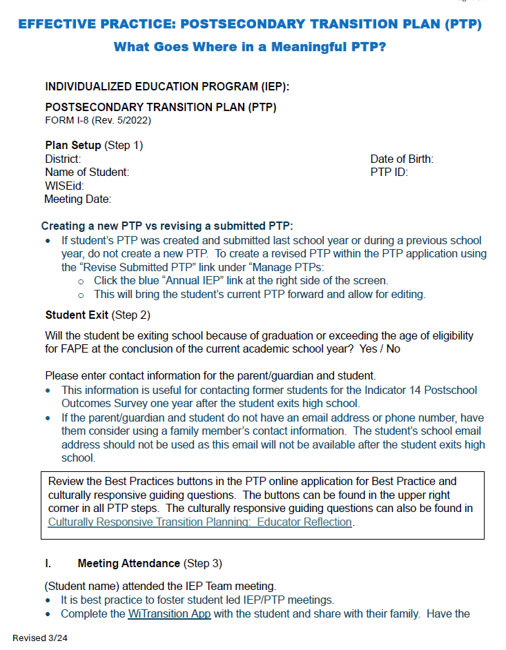 Effective Practice: Postsecondary Transition Plan (PTP)